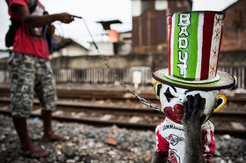 La fototrappola di Alejandro Prieto’s ha colto questo giaguaro, specie a rischio per la perdita di habitat e a causa del bracconaggio, mentre affilava i suoi artigli su un albero, nel Messico occidentale. Questo scatto ha vinto nella categoria “story”. Fotografia di Alejandro Prieto, Wildlife Photographer of the YearL’italiano Marco Colombo ha vinto nella categoria “urban wildlife” con questo scatto notturno che ritrae un orso marsicano mentre si aggira in un paese del Parco Nazionale d’Abruzzo, Lazio, e Molise. Fotografia di Marco Colombo, Wildlife Photographer of the YearIl sedicenne Skye Meaker ha conquistato lo Young Wildlife Photographer of the Year con questo scatto di un leopardo, chiamato Mathoja, fotografato nella Mashatu Game Reserve in Botswana. Fotografia di Skye Meaker, Wildlife Photographer of the YearJavier Aznar González de Rueda si è imposto nella categoria “portfolio” con una serie di sei scatti. Tra questi l’immagine, realizzata in Ecuador, di una Membracidae con la sua numerosa prole. Fotografia di Javier Aznar González De Rueda, Wildlife Photographer of the YearGeorgina Steytler ha vinto nella categoria “comportamento degli invertebrati” con questa foto di vespe vasaie del Western Australia. Le femmine realizzano palline di fango per costruire i favi, cementandole insieme, una ad una. Fotografia di Georgina Steytler, Wildlife Photographer of the YearUn macaco di nome Timbul è il protagonista dello scatto di Joan de la Malla che ha vinto nella categoria “fotogiornalismo”. Gli spettacoli di macachi sono abbastanza comuni in alcune regioni dell’Indonesia, dove le scimmie sono costrette ad andare in bici, a ballare e fare altri trucchi, a volte per ore. Quando non si esibisce, Timbul vive incatenato nel cortile dell’abitazione del suo proprietario, nei pressi di una linea ferroviaria. Fotografia di Joan De La Malla, Wildlife Photographer of the YearDavid Herasimtschuk ha vinto nella categoria “anfibi e rettili” con questa immagine di una Nerodia sipedon o colubro d’acqua nelle fauci di una salamandra gigante. “Quando il serpente ha avvolto nelle sue spire la salamandra”, ha raccontato Herasimtschuk, “questa ha mollato per un attimo la presa permettendo al serpente di scappare”. Fotografia di David Herasimtschuk, Wildlife Photographer of the Year