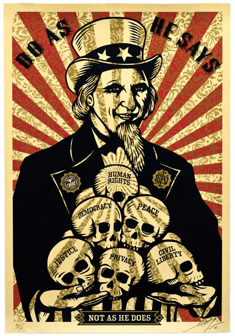 Il Presidente degli Stati Uniti ha da sempre negato qualsiasi accordo con l’artista, ma ha espresso la propria gratitudine per il sostegno da lui dimostrato con un’operazione del genere. I gota di mezzo mondo hanno calcolato che l’operazione di Fairey ha contribuito dal 3 al 5% sulla positività dei voti in favore di Obama, a confermare il potere dell’immagine e dell’influenza artistica che Fairey sa avere. Ma l’artista paga in prima persona per questo. Il ragazzo oggi quarantunenne viene imprigionato più di venti volte. Trattenuto in carcere illegalmente. Multato. Pestato. In quell’anno, quello in cui un ex assistente sociale nero diventa Presidente degli Stati Uniti, il 2009, Shepard Fairey viene arrestato dalla polizia di Boston con un’operazione che coinvolge decine di agenti. Viene trascinato fuori dal taxi che lo sta portando all’ICA (Institute for Contemporary Art) per l’inaugurazione della sua prima personale museale.
