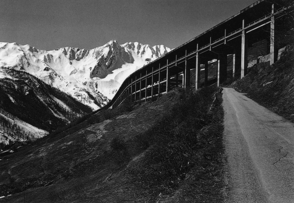 L’intreccio di “segnali” che si accumula dentro le fotografie di Gabriele Basilico ci appare come allentato, ordinato nelle proprie corrispondenze”. Sembra quasi che il fotografo abbia individuato nella congerie dei segni, geologici naturali agricoli edilizi industriali, una chiave demiurgica, una sistematicità intrinseca che ci svela non solo i piani prospettici e le interferenze stratificate di un paesaggio molto complesso, ma la specifica ragion d’essere di ogni ponte, viadotto, muretto, palo, cavo d’elettrodotto, paravalanghe, spartitraffico e – insieme – la nascosta armonia di quella che normalmente ci appare come una discordante e provvisoria sovrapposizione di elementi e di esigenze.